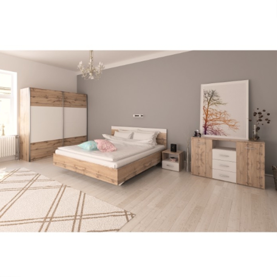 Szekrény tolóajtóval, tölgy wotan/fehér, GABRIELA NEW