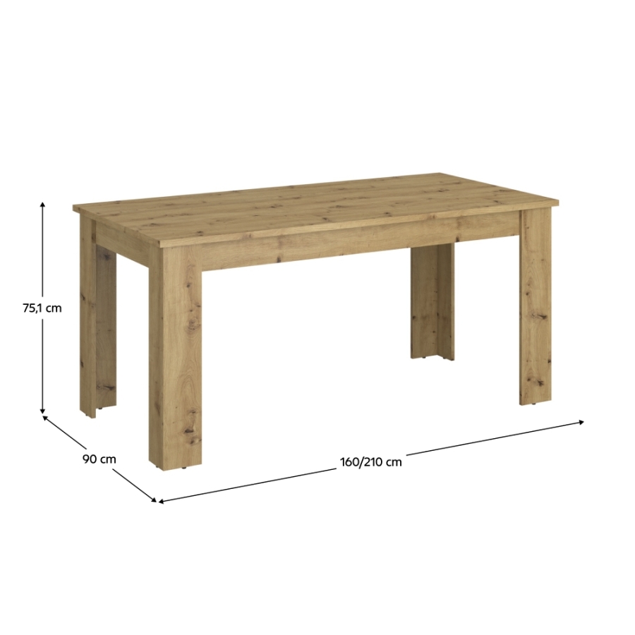 Anyag: laminált DTD/ABS élek Szín: artisan tölgy Méretek (SzxMéxMa): 160-210x80x75,1 cm Széthúzható Alkalmas 6-8 személy számára Műanyag lábak Modern dizájn Szétszerelve szállítva
