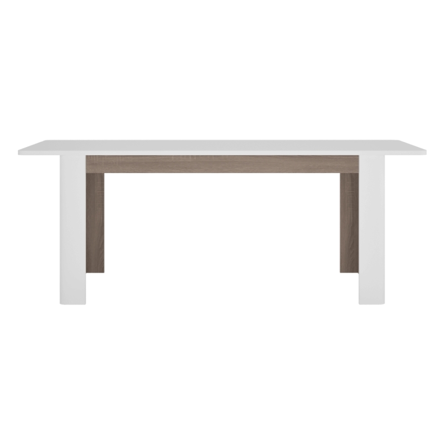 Széthúzható étkezőasztal LYNATET TYP 75 Anyag: laminált DTD, MDF Szín: fehér extra magasfényű HG/sonoma tölgy trufla Méretek (SzxMéxMa): 160-200x90x75,5 cm. Anyag vastagsága: 16 mm Teherbírás: 80 kg Alkalmas 6-8 személy számára Széthúzható A korpusz matt kialakítású Szétszerelve szállítva.