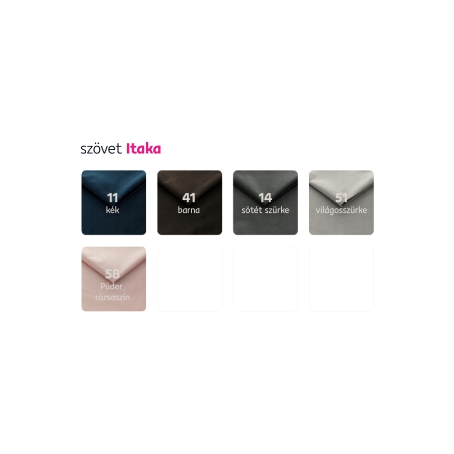 Lehétőség az Itaka szövet 5 színváltozatban megrendelés, ár: fotel 97 900 Ft, 2 személyes - 137 900 Ft és 3 személyes - 178 500 Ft. Egyedi megrendelés esetén az adott összeg 10%-át előre ki kell fizetni. Az előleg kifizetése után a megrendelését gyártásra bocsátjuk. Szállítási idő 8-10 hét.