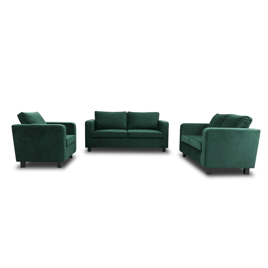 Teljesen kárpitozott heverő, 3-as ülés, smaragd szövet, LUANA