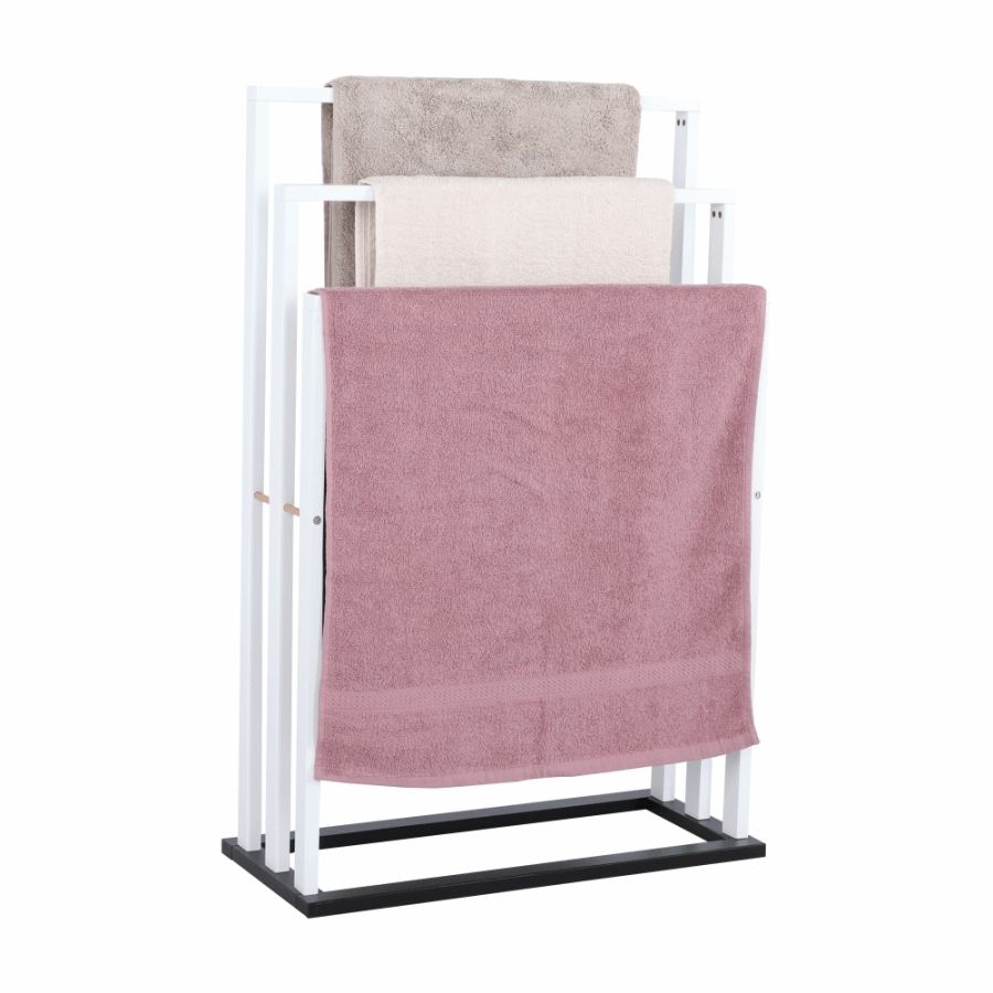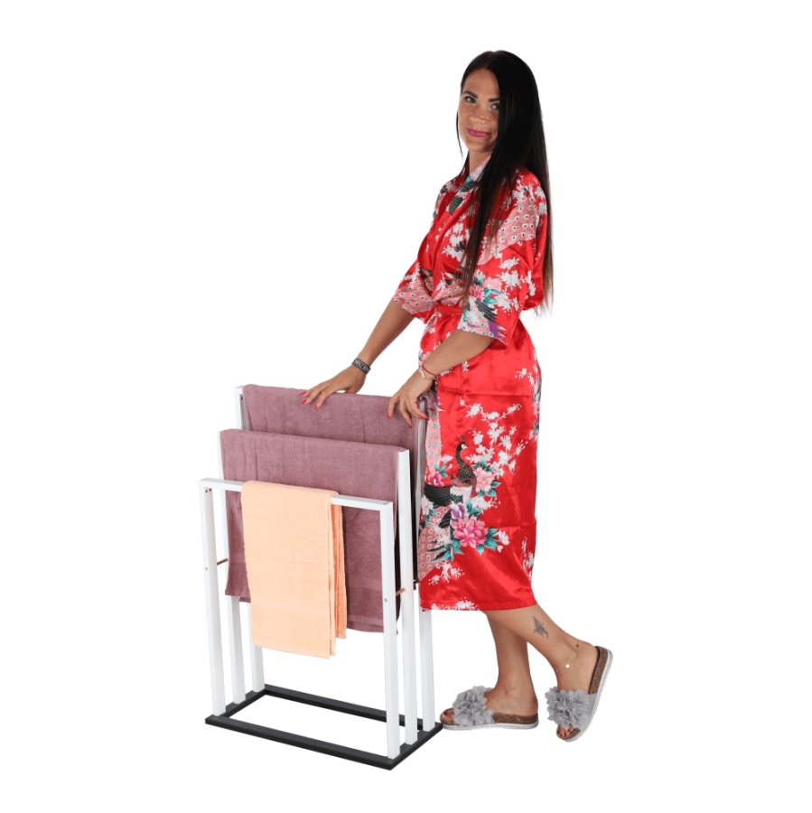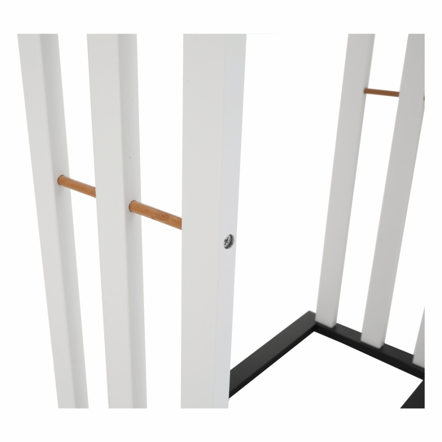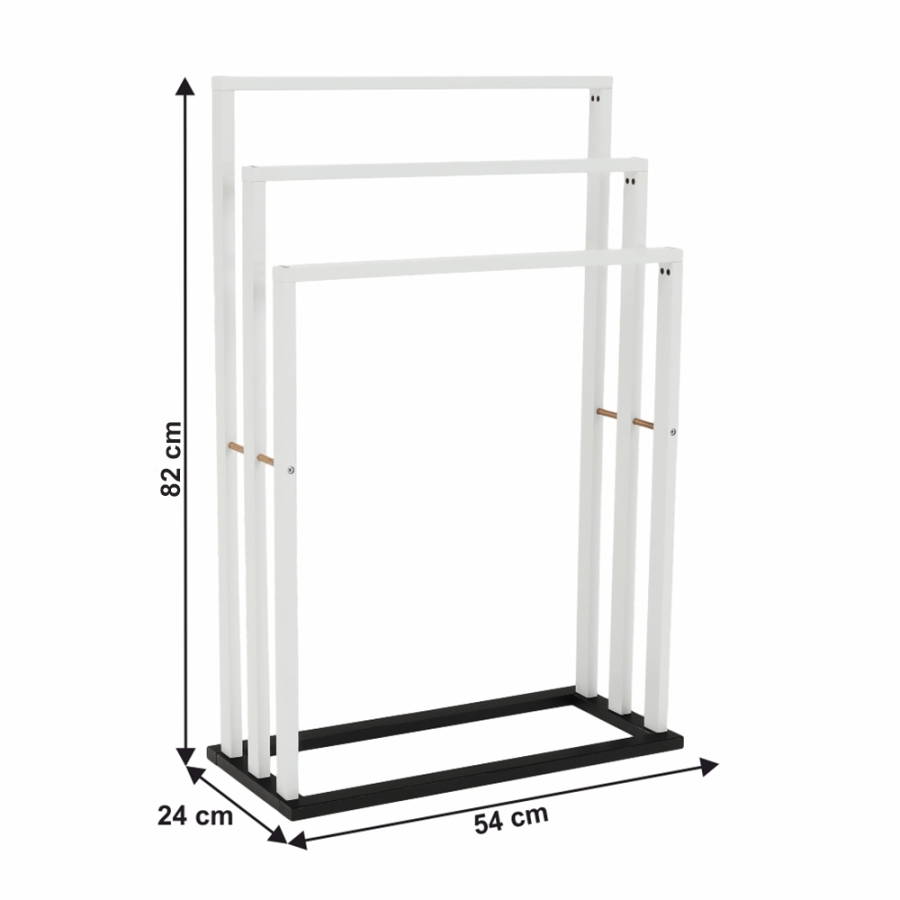Törülközőtartó KOMO NEW Anyag: MDF Szín: fehér/fekete Méretek (SzéxMéxMa): 54x24x82 cm Szállítás összeszerelve.