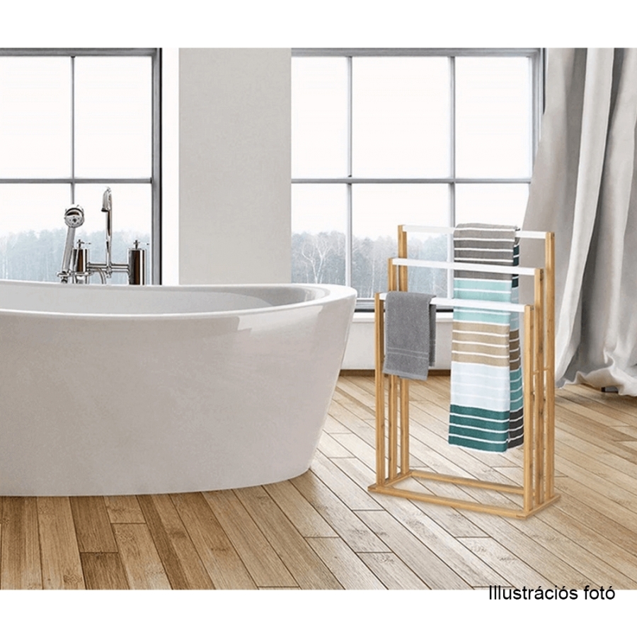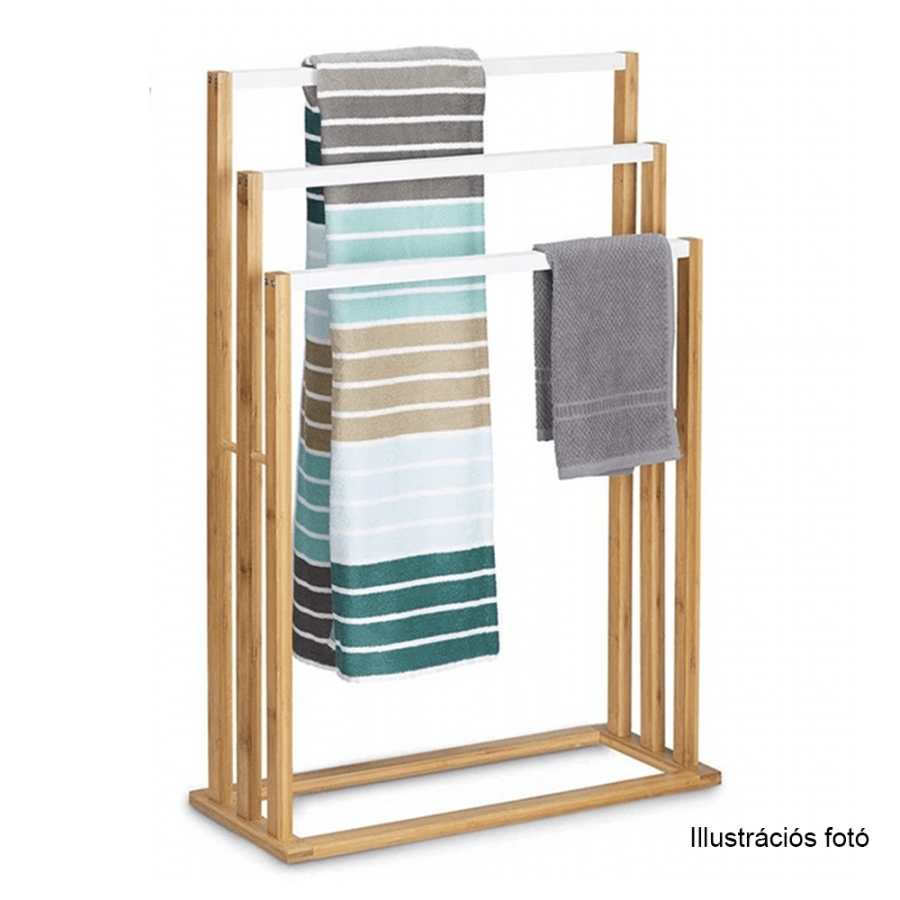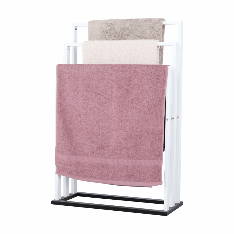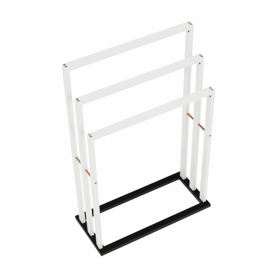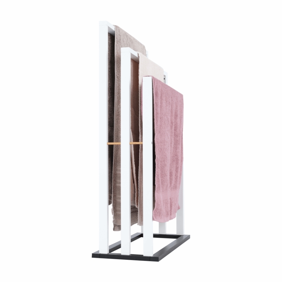 Törülközőtartó KOMO NEW Anyag: MDF Szín: fehér/fekete Méretek (SzéxMéxMa): 54x24x82 cm Szállítás összeszerelve.