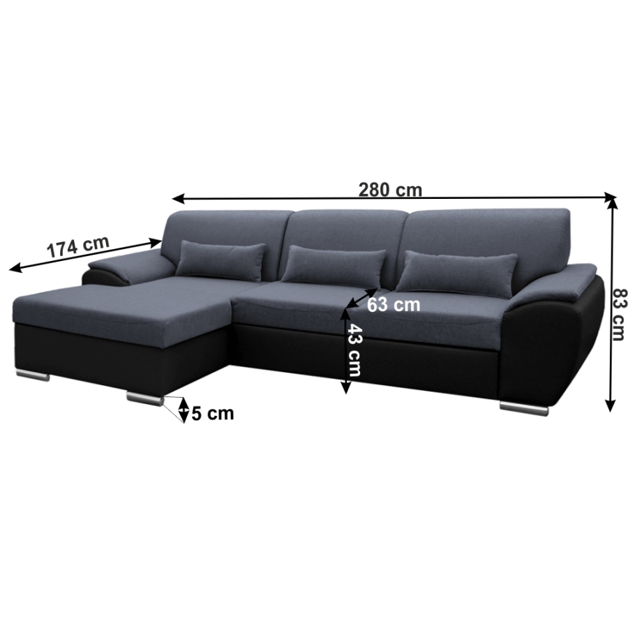 Kárpitozott sarokülőgarnitúra EMILY ROH MALÝ rakodótérrel, Balos változat, Anyag: textilbőr fekete / szövet Soro 97 sötét szürke, A szövet Soro kopásállósága: 90 000 - 100 000 Martindale A textilbőr kopásállósága: 100 000 Martindale Méretek (SzéxMaxMé): 280x83x174 cm, fekvőterület (SzéxH):130x210 cm, az ülőrész magassága x mélysége: 43x63 cm. Az alsó tér magassága a padlótól: 5 cm Terhelhetőség ágyanként: 90 kg Megrendelhető a textilbőr 4 színváltozatában és a Soro szövet 6 színárnyalatában, ár 456 900 Ft. Egyedi megrendelés esetén szükség van az adott összegnek a 10%-át befizetni,mint előleg. Az előleg befizetése után az Ön követelményét benyújtjuk a gyártónak. Szállítási idő: 6-8 hét.