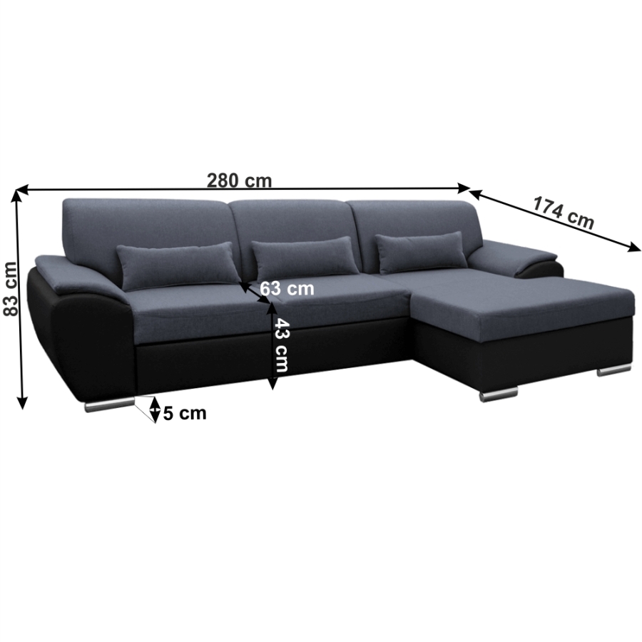 Kárpitozott sarokülőgarnitúra EMILY ROH MALÝ rakodótérrel, Jobbos változat, Anyag: textilbőr fekete / szövet Soro 97 sötét szürke, A szövet Soro kopásállósága: 90 000 - 100 000 Martindale A textilbőr kopásállósága: 100 000 Martindale Méretek (SzéxMaxMé): 280x83x174 cm, fekvőterület (SzéxH):130x210 cm, az ülőrész magassága x mélysége: 43x63 cm. Az alsó tér magassága a padlótól: 5 cm Terhelhetőség ágyanként: 90 kg Megrendelhető a textilbőr 4 színváltozatában és a Soro szövet 6 színárnyalatában, ár 456 900 Ft. Egyedi megrendelés esetén szükség van az adott összegnek a 10%-át befizetni,mint előleg. Az előleg befizetése után az Ön követelményét benyújtjuk a gyártónak. Szállítási idő: 6-8 hét.