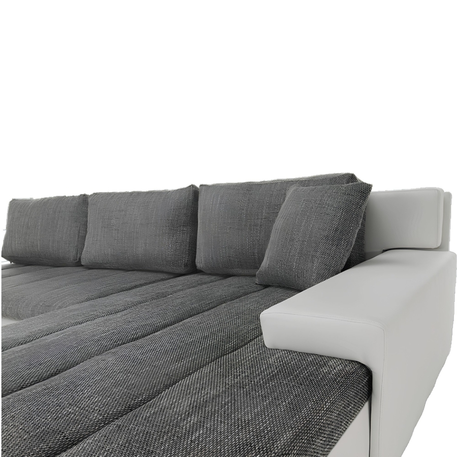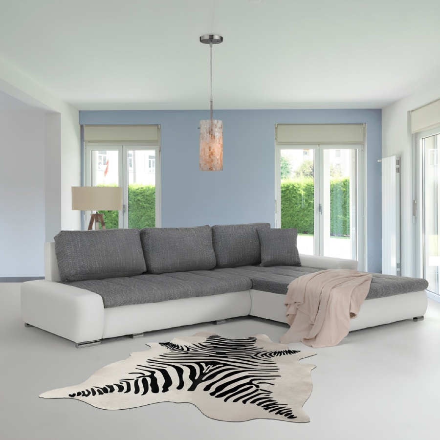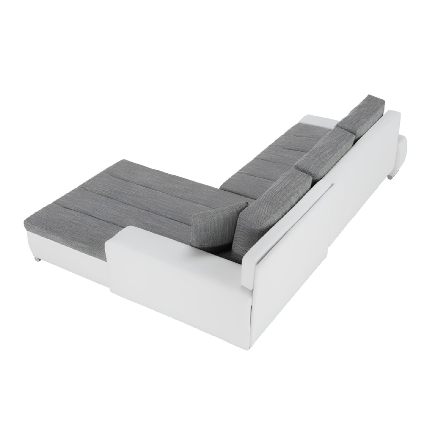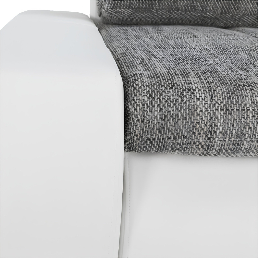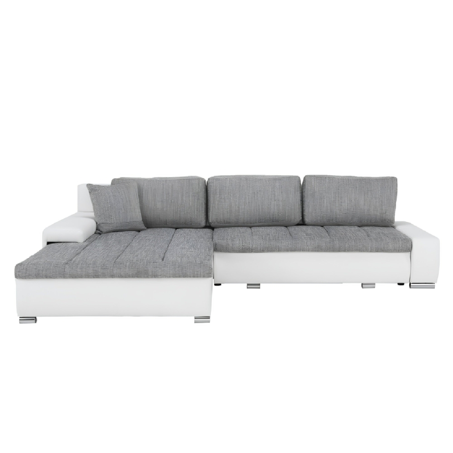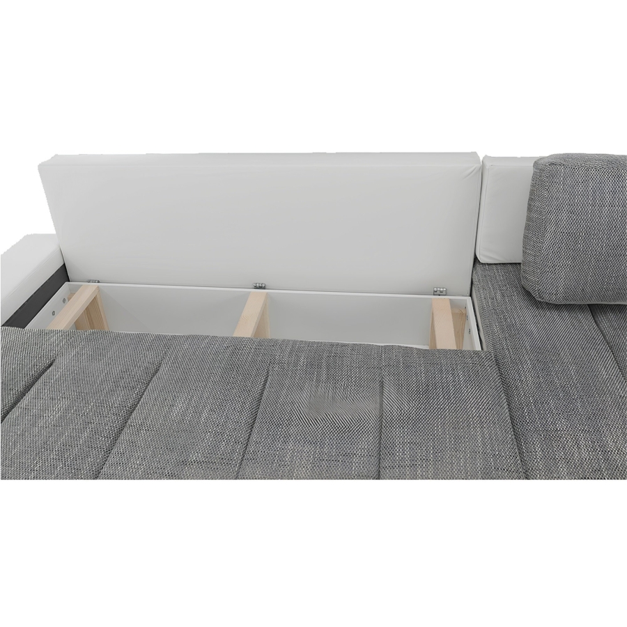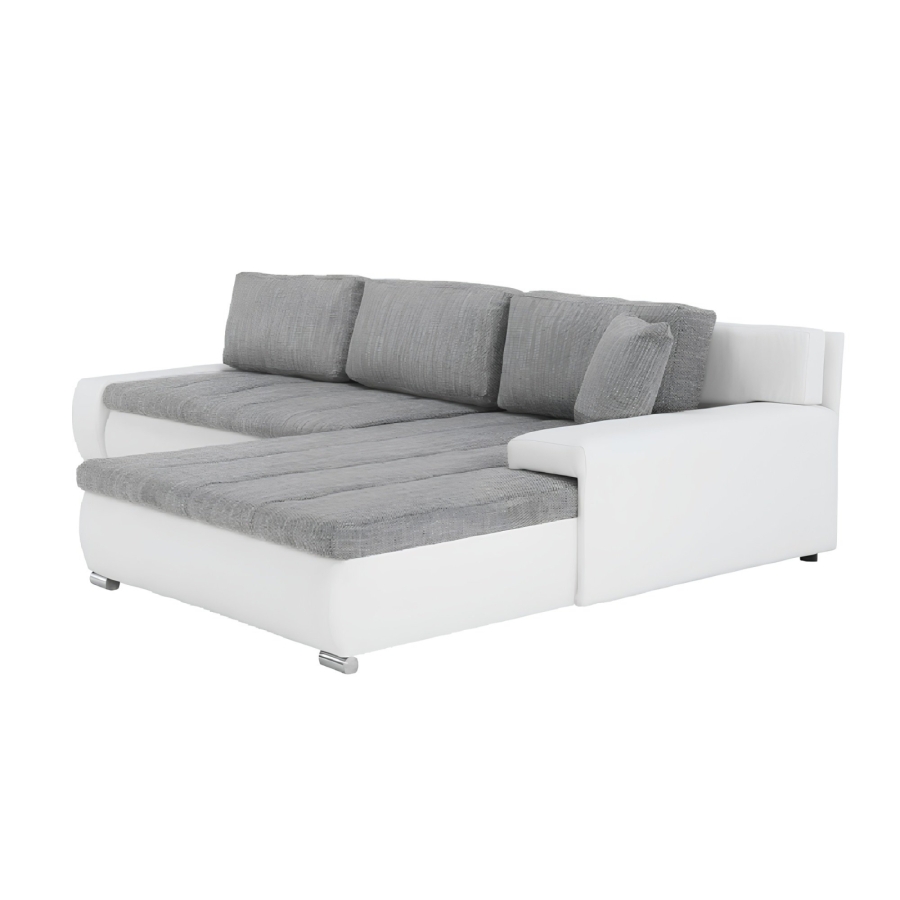 Kinyitható kárpitozott sarokülőgarnitúra rakodótérrel, univerzális B/J Változat, fehér műbőr/ Berlin 01 szürke melír , A szövet kopásállósága: 55 000 Martindale A textilbőr kopásállósága: 100 000 Martindale bonell ülőrész, Méretek (SzéxMéxMa): 300x215x72 cm, Fekvőterület (SzéxH): 150x240 cm. Ottomán szélessége: 120 cm Terhelhetőség: 90 kg Egyénimegrendelés lehetséges 4 szín-változatban texilbőrből kombinálva a Berlin szövet 4 színváltozatával. Ár: 411 500 Ft. Szállítási idő 6-8 hét.