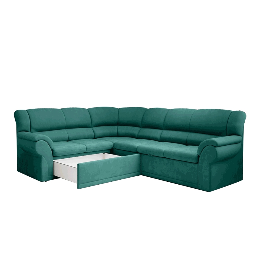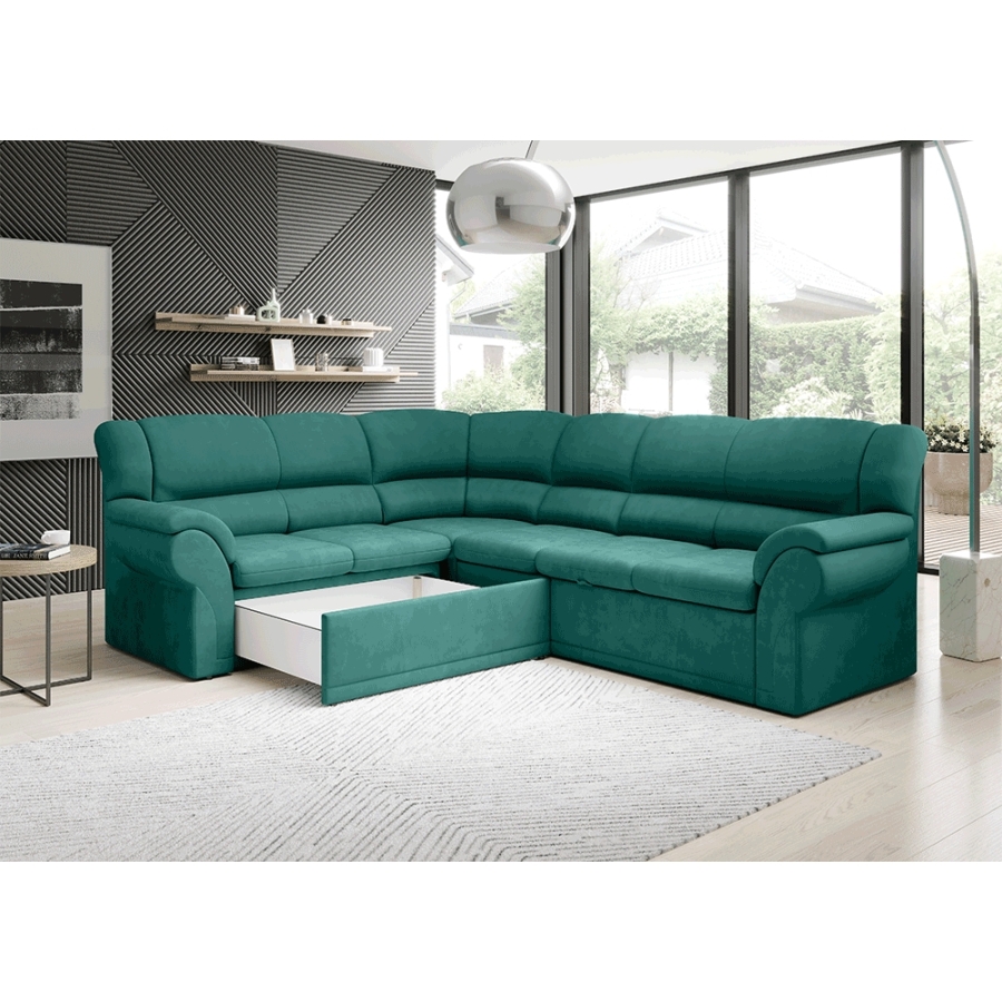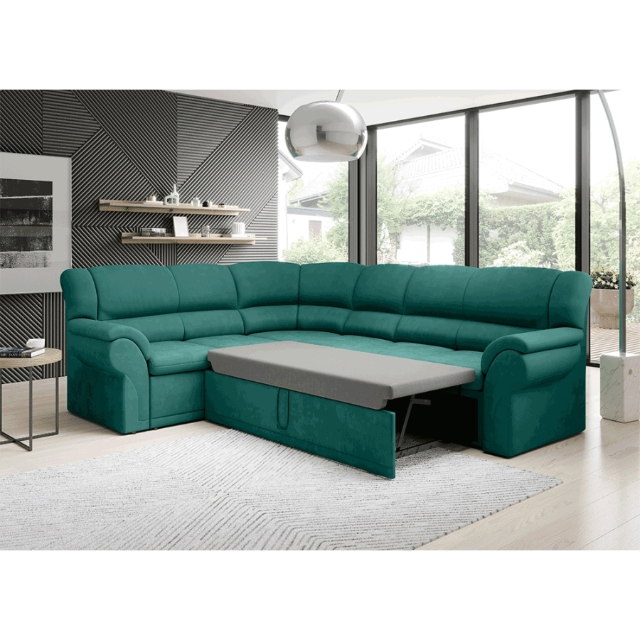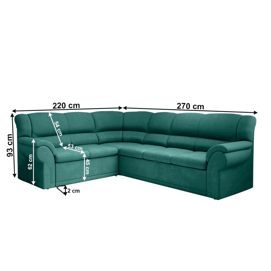 Anyag: szövet Monolith, 100 % poliészter A szövet kopásállósága a Martindale teszt szerint: 100 000 ciklus Szín: smaragd Méretek (SzxMéxMa): 270x220x93 cm kinyitható Alvófelület (SzéxHo):120x200 cm Ülés magassága: 45 cm Ülés mélysége: 53 cm Háttámla magassága: 54 cm Könyöktámasz magassága: 62 cm Az alsó tér magassága a padlótól: 2 cm Teherbírás egy személyre: 90 kg sarok balos kivitelezés Töltet: a mag PUR habból és rugós falistából áll tárhellyel Bontásban szállítva Megrendelhető 3 színváltozatban Hugo szövetből, vagy az anyagban Monolith, ára 516 900 Ft. Egyedi megrendelés esetén szükség van az adott összegnek a 10%-át befizetni,mint előleg. Az előleg befizetése után az Ön követelményét benyújtjuk a gyártónak. Szállítási idő: 8-10 hét.
