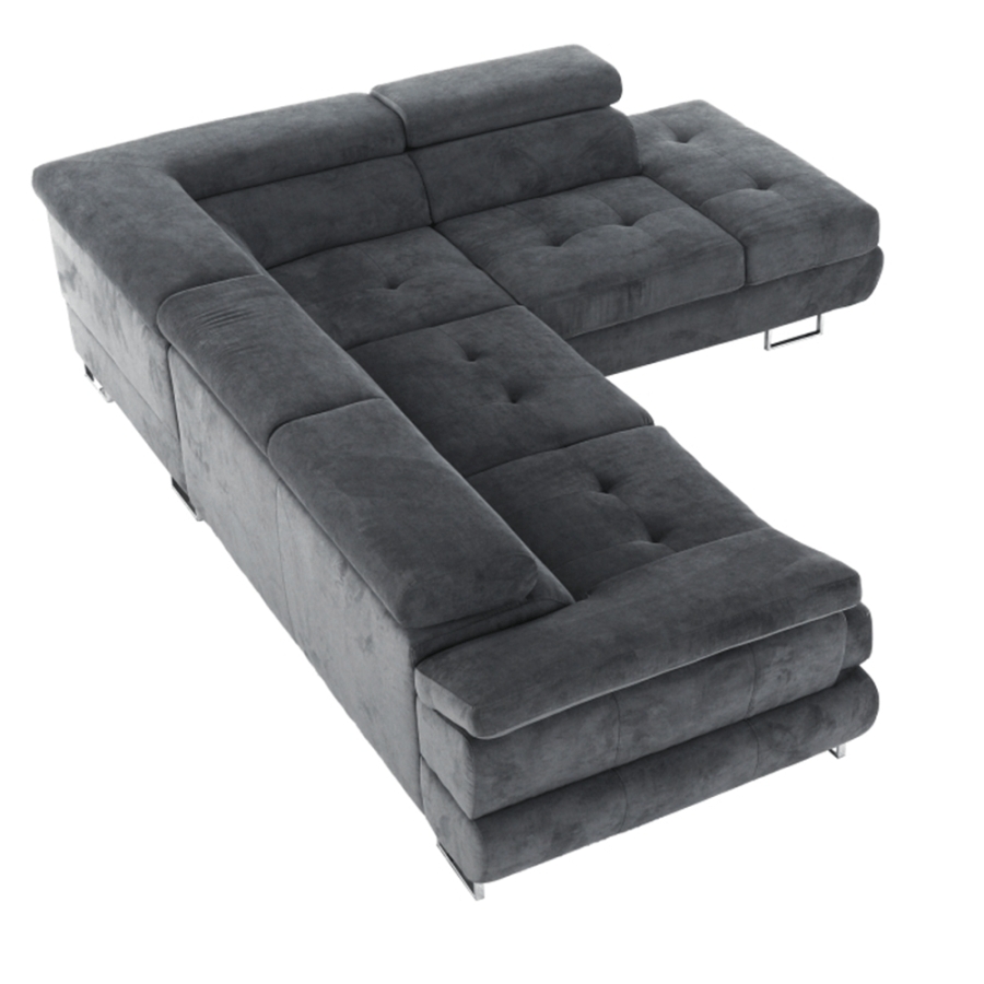 Anyag: szövet Soro 97 A szövet kopásállósága a Martindale teszt szerint: 90 000- 100 000 ciklus Szín: szürke Méretek (SzxMéxMa): 275x225x71/85 cm. Ülés magassága: 40 cm Ülés mélysége: 59 cm Az alsó tér magassága a padlótól: 9 cm Háttámla magassága: 32/50 cm A lehajtható háttámla mélysége: 41 cm Kartámasz (MéxMa): 105x62/69 cm Ottomán szélessége: 104 cm Teherbírás: 90 kg Sarok Dekoratív steppelés Érdekes támla 3 állítható fejtámla 5 fokban állítható támlák Teljesen kárpitozott Rugós töltelék Fém lábak króm felülkezeléssel Jobbos kivitelezés Díszpárnák nélkül szállítva Szétszerelve szállítva A kanapét a Soro szövet 7 színváltozatában megvásárolhatja a mintafüzet alapján is BUTON R összecsukható 633 800 Ft és BUTON P fix 579 900 Ft. Választását közvetlenül a megrendelés megjegyzései közé írja be. Egyedi megrendelés esetén az adott összeg 10%-át előlegként szükséges befizetni. Az előleg befizetése után a kérése gyártásba kerül. A szállítási idő 6-8 hét.