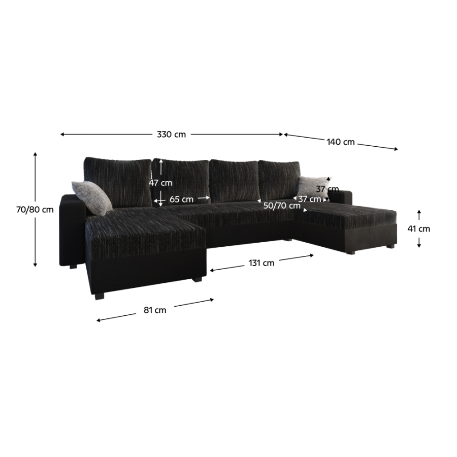 Méretek (SzxMéxMa): 330x161x70/80 cm