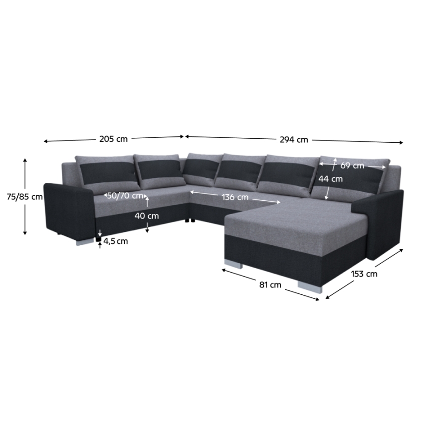 Méretek (SzxMéxMa): 294x153/205x75/85 cm