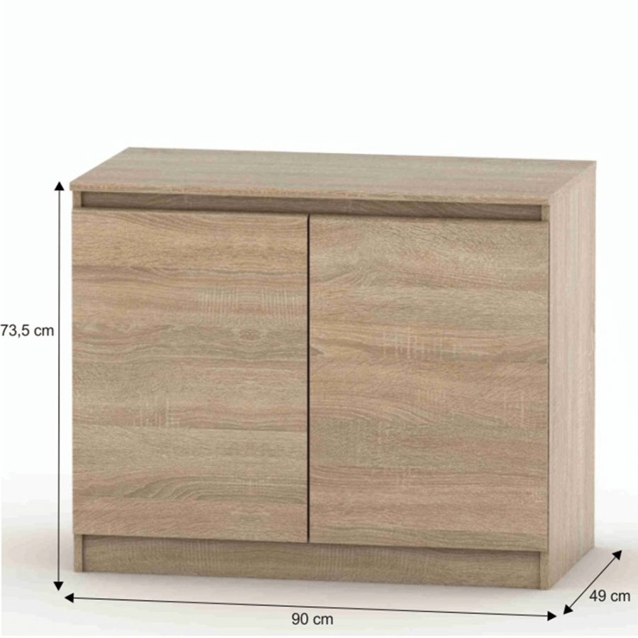 2 ajtós komód HANY NEW 008 Anyag: laminált DTD Színe: sonoma tölgy Méretek (SzéxMéxMa): 90x49x73,5 cm Minőségi szlovák termék. ABS élek Szállítás szétszerelve.