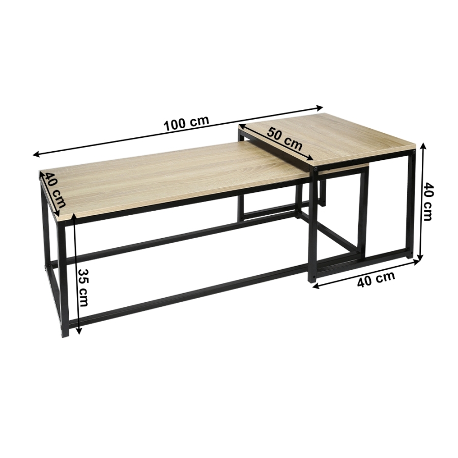 2 dohányzóasztal szett, tölgy sonoma/fekete, KASTLER NEW TYP 2