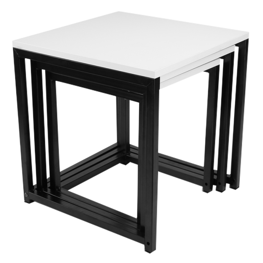 3 dohányzóasztal szett, matt fehér/fekete, KASTLER NEW TYP 3