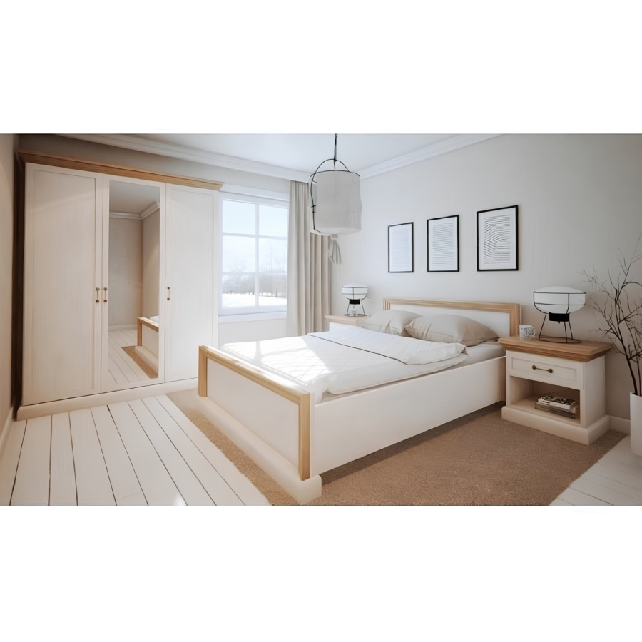 ROYAL L1 ágy az elegáns provence-i stílusú ROYAL elemes bútorcsaládból Ideális a hálószobába. Anyag: váz laminált DTD + díszlécek Színváltozat: északi fenyő vad tölggyel kombinálva Méretek (SzéxMéxMa): 171x212x74 cm Anyagvastagság: 15 mm Fekvőfelület mérete (SzéxMé): 160x200 cm Terhelhetőség: 110 kg Szállítás: szétszerelve Az ágyat ágyráccsal szállítjuk, matrac nélkül Azt javasoljuk, hogy legalább 25 cm magas matracot vásároljon