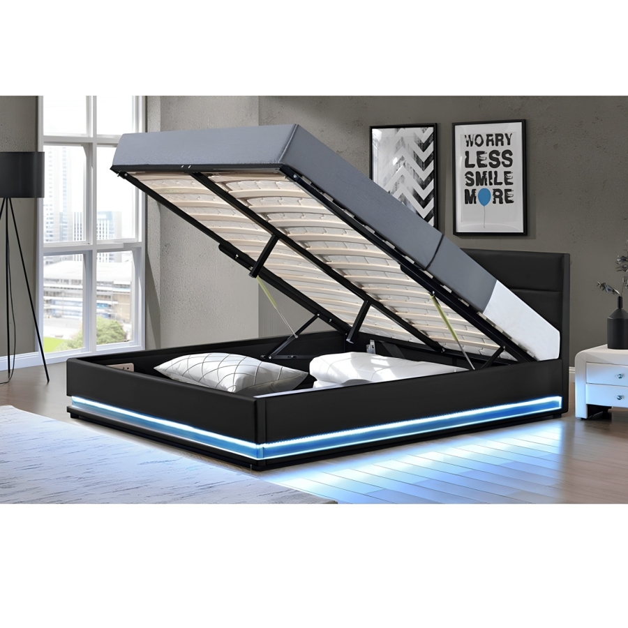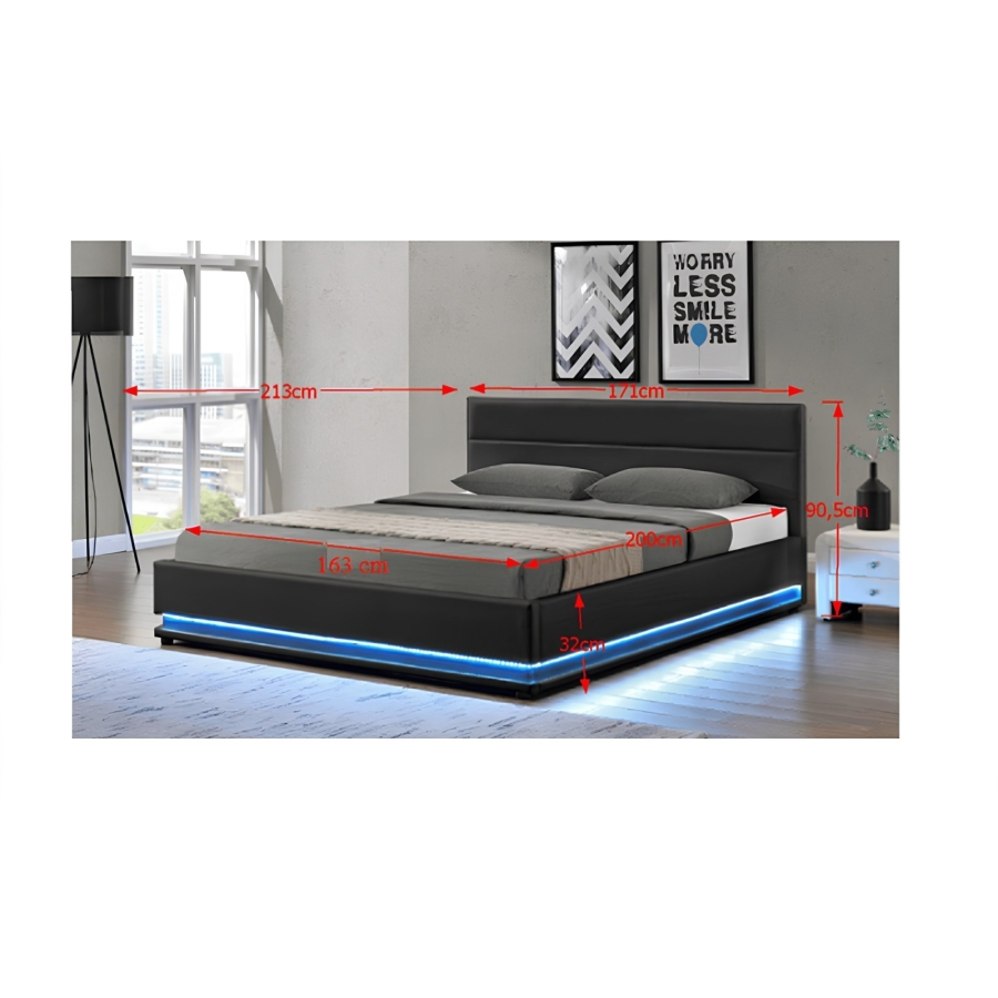 Ágy BIRGET NEW, ágyneműtartóval, lamellás ágyráccsal, LED világítással