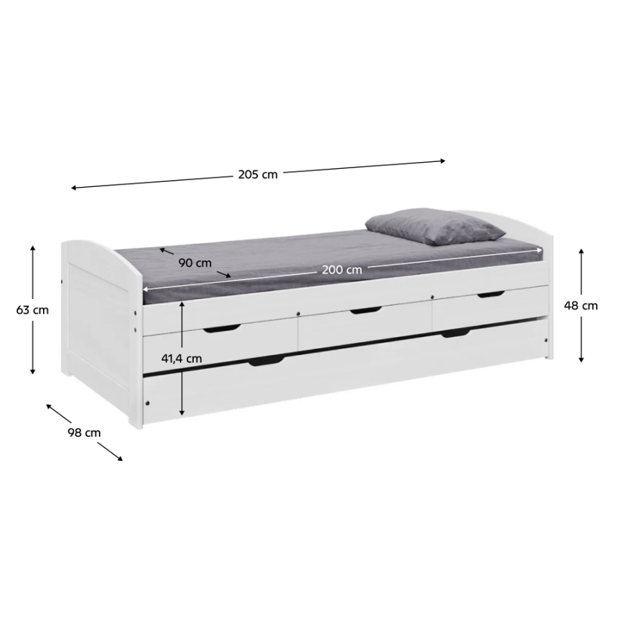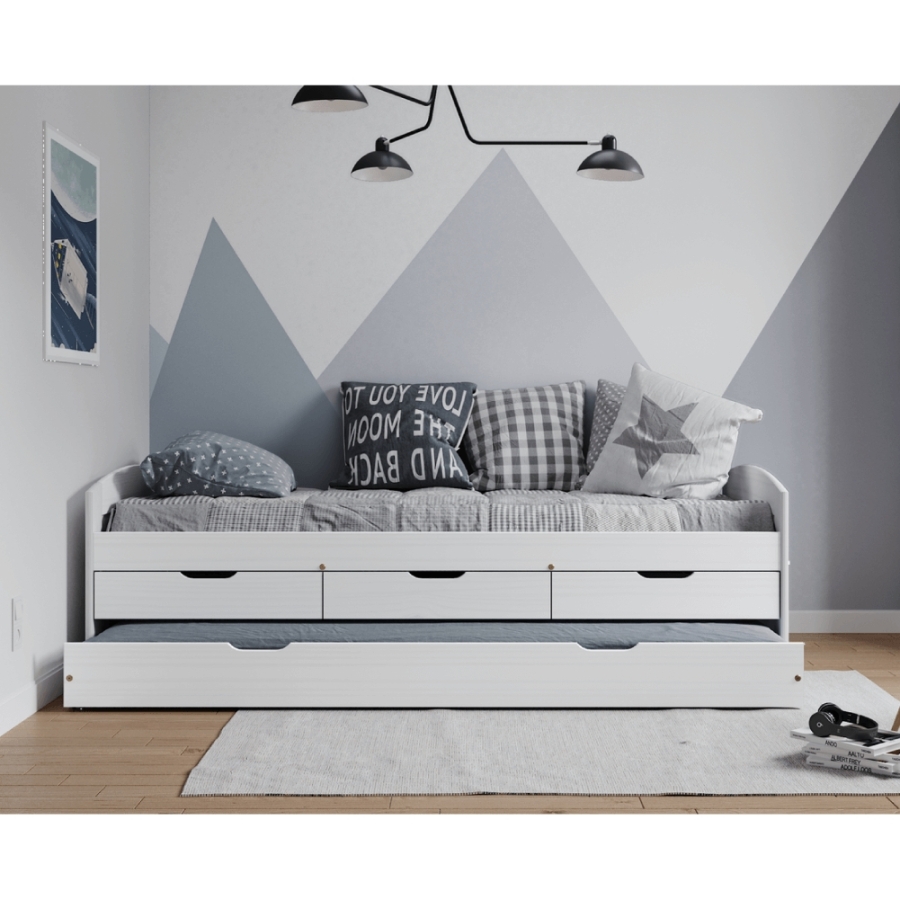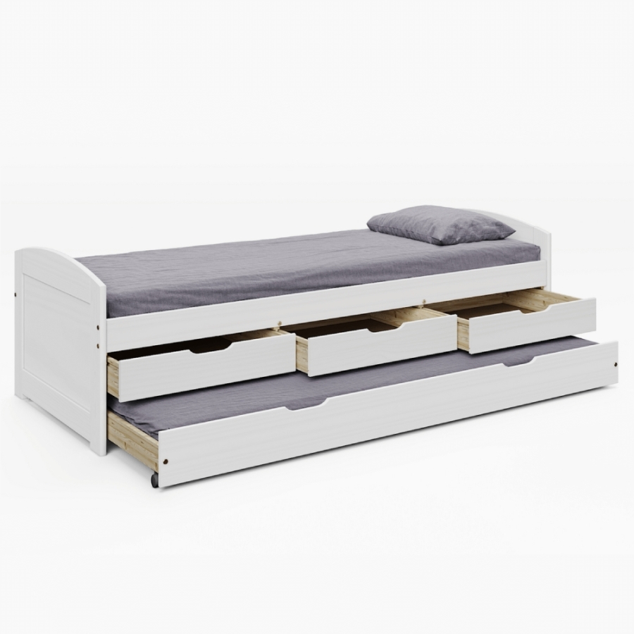 Ágy kihúzható pótággyal, fehér, tömörfa, 90x200, MARINELLA NEW