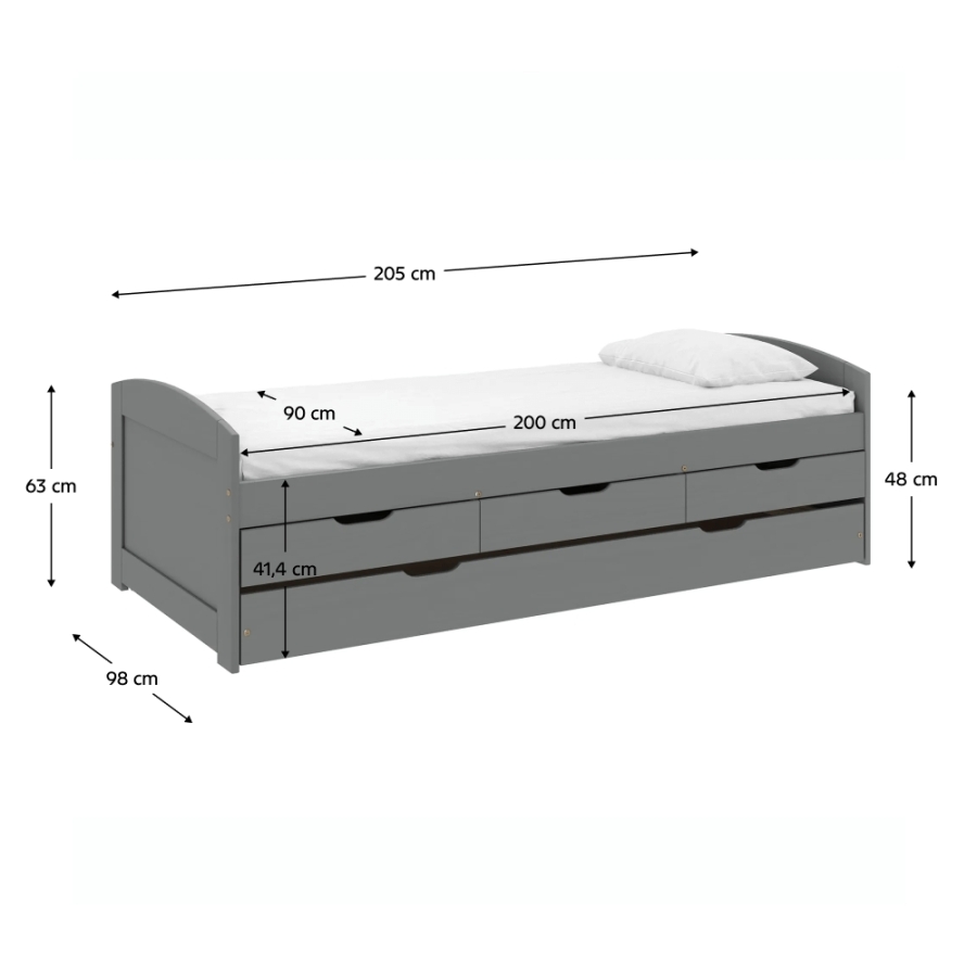 Ágy kihúzható pótággyal, szürke, tömörfa, 90x200, MARINELLA NEW