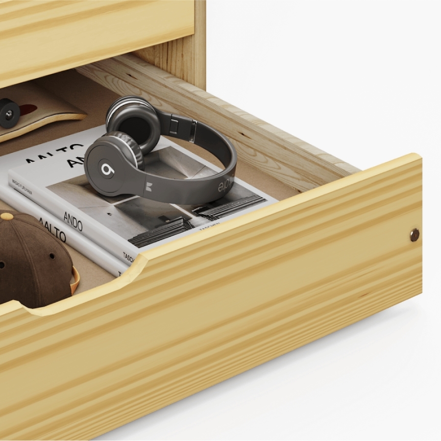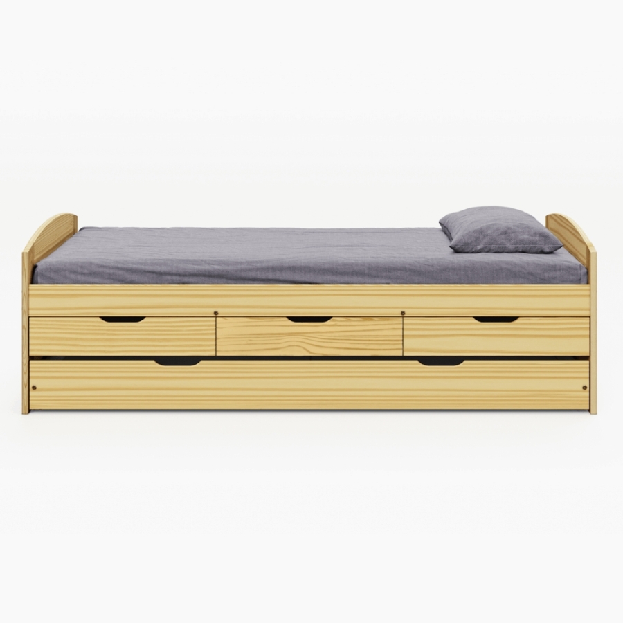 Ágy kihúzható pótággyal, természetes, tömörfa, 90x200, MARINELLA NEW