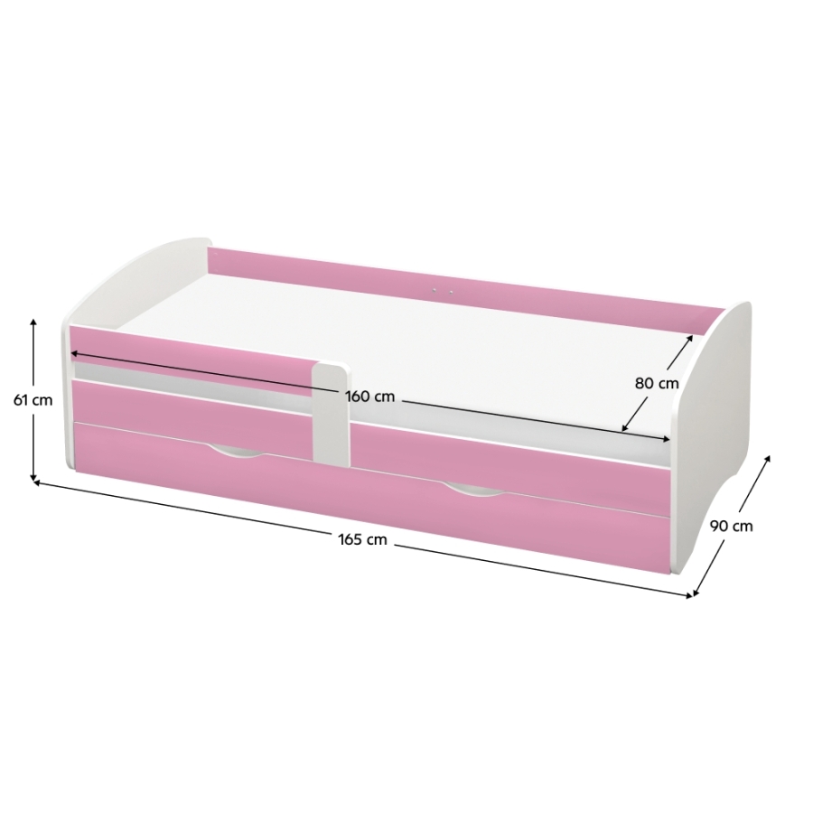 Ágy ráccsal és tárhellyel 80x160, fehér/rózsaszín, COCOLINO