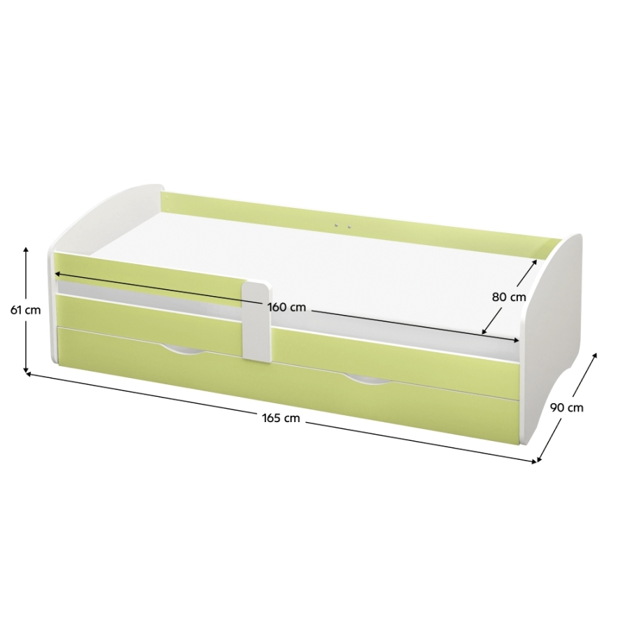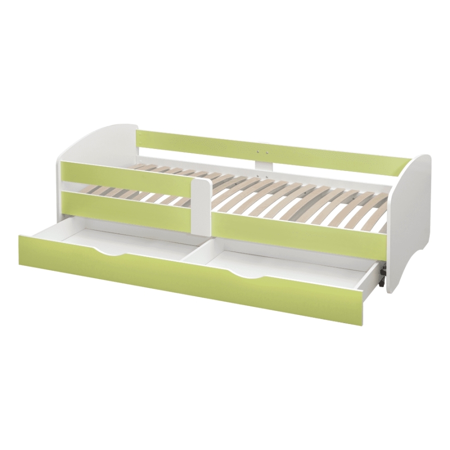 Ágy ráccsal és tárhellyel 80x160, fehér/zöld, COCOLINO