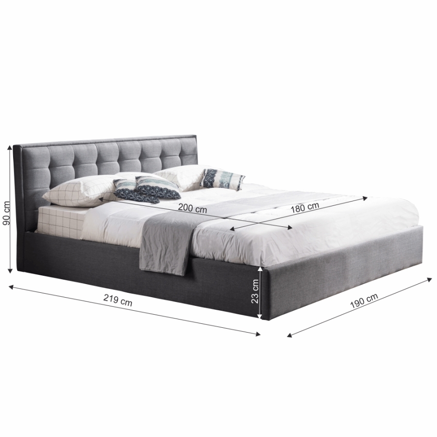 Anyag: szövet A szövet kopásállósága: 100 000 Martindale Szín: szürke Méretek (SzxVxH): 190x219x90 Alvási terület (SzxV): 180x200 cm Magasság ágyrácsig : 23 cm Lamellás ágyrácssal szállítva Teherbírás ágyonként: 110 kg Ágykeret besüllyedése: 4 cm Tárolóhely Steppelt homlokzat Szállítás matrac nélkül Lehetőség matracok vásárlására ajánlatunkból Bontásban szállítva