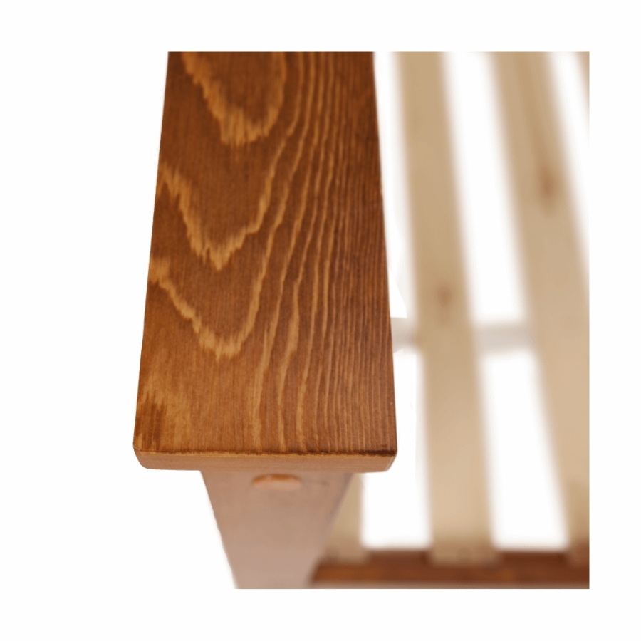 Ágy, lécezett ráccsal Provo Anyag: fenyőfa/furnérlemez Szín: tölgy Méretek(SzéxMéxMa): 170x213x82 cm Teherbírás ágyonként: 90 kg Fekvőfelület mérete: 160x200 cm Szétszerelve szállítva hengerelt ágyráccsal, matrac nélkül.