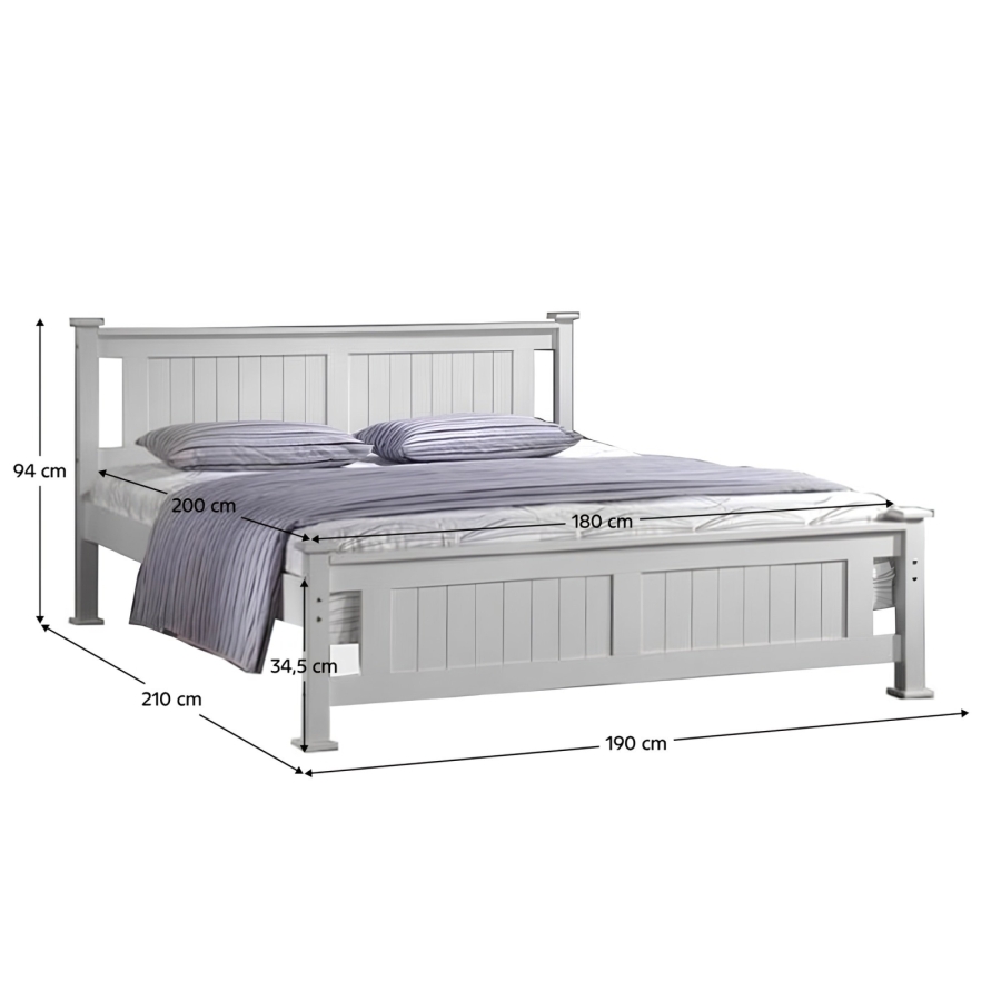 Ágy hengerelt ágyráccsal LUCAS NEW Anyag: fenyőfa/MDF/furnérlemez Szín: fehér Méretek (SzéxMéxMa): 190x210x94 cm Fekvőterület: 180x200 cm Magasság az ágyrácsig: 34,5 cm Hozzárendelhető matrac 180x200 cm méretben. Szállítás szétszerelve.