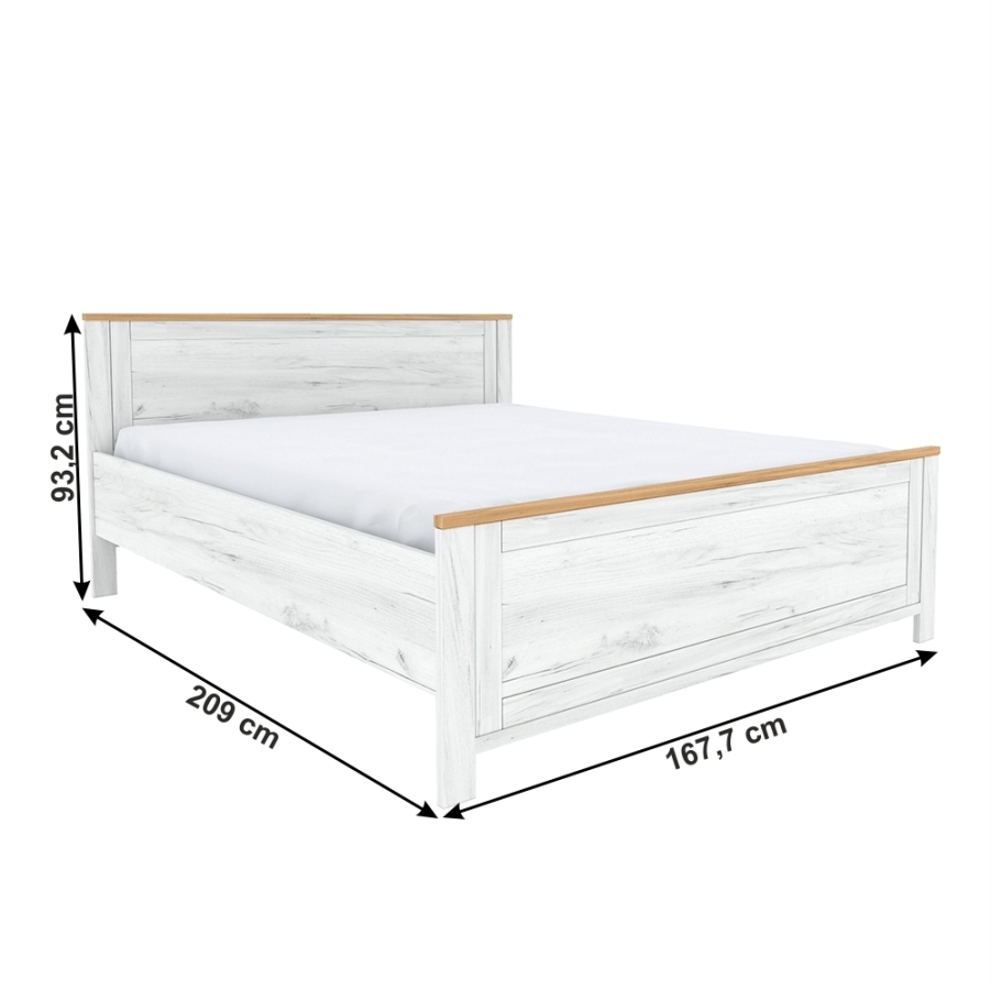Anyag: DTD laminált Szín: tölgy craft arany/tölgy craft fehér Méretei (SzéxMéxMa): 167,7x209x93,2 cm Anyag vastagsága: 16 mm Terhelhetőség: 110 kg Ágyrács nelkül szállítva Matrac nelkül szállítva Azt javasoljuk, hogy legalább 20 cm magas matracot vásároljon Bontásban szállítva.