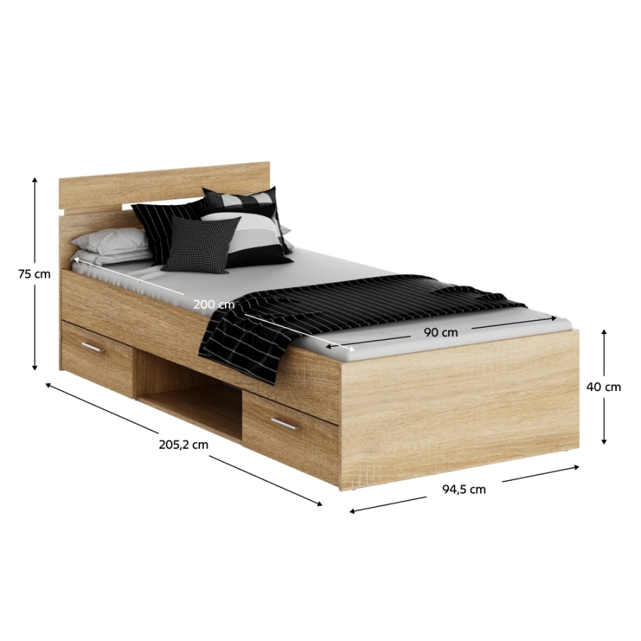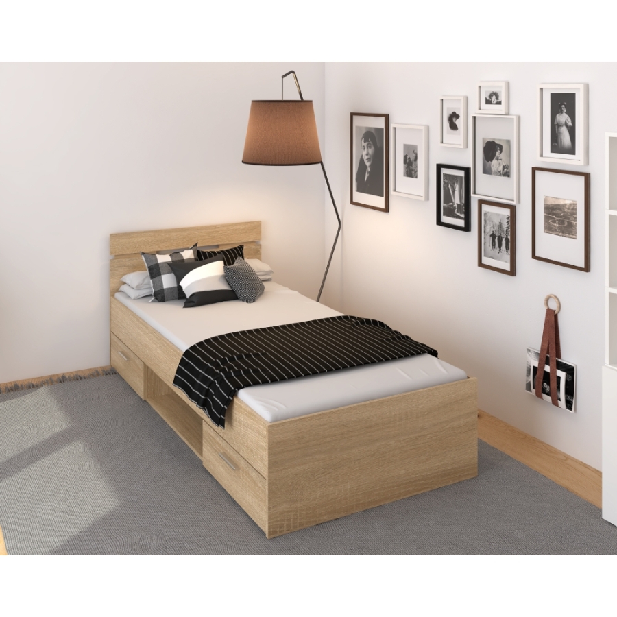 Ágykeret, 90x200, sonoma tölgyfa, MICHIGAN NEW