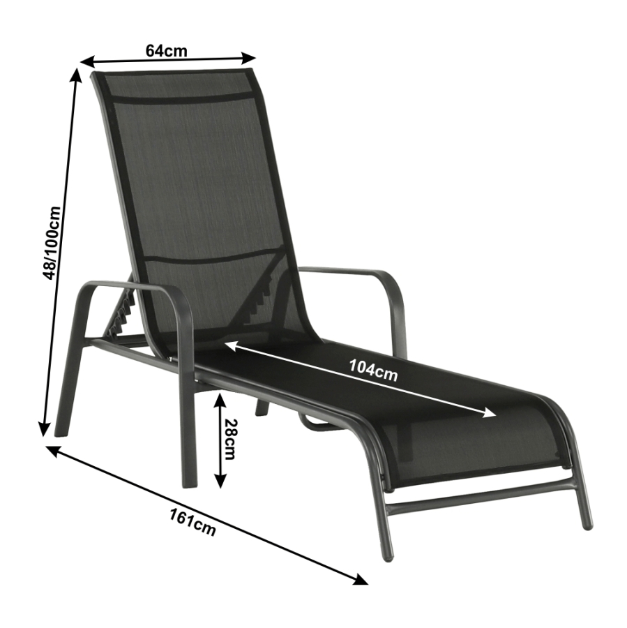 Kárpitozás anyaga: szövet Kárpitozás színe: fekete Láb anyaga: fém Láb színe: szürke Méretei (SzéxMéxMa): 64x161x48/100 cm Ülésmagasság: 28 cm Ülésmélység: 104 cm Teherbírás: 90 kg Állítható Kartámaszokkal Bontásban szállítva