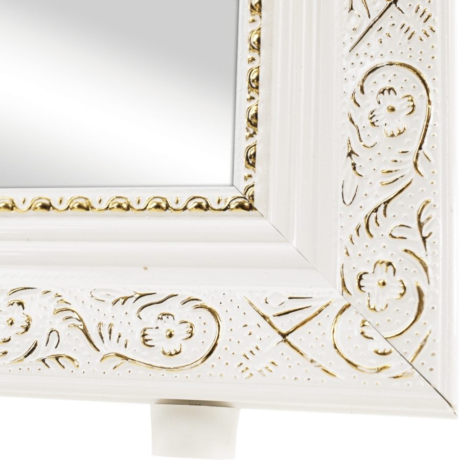 Anyag: érc/fa Szín: fehér/arany dísz Méretek (SzxH): 40x150 cm Fakeret Állvány Elegáns Demontba szállítva.