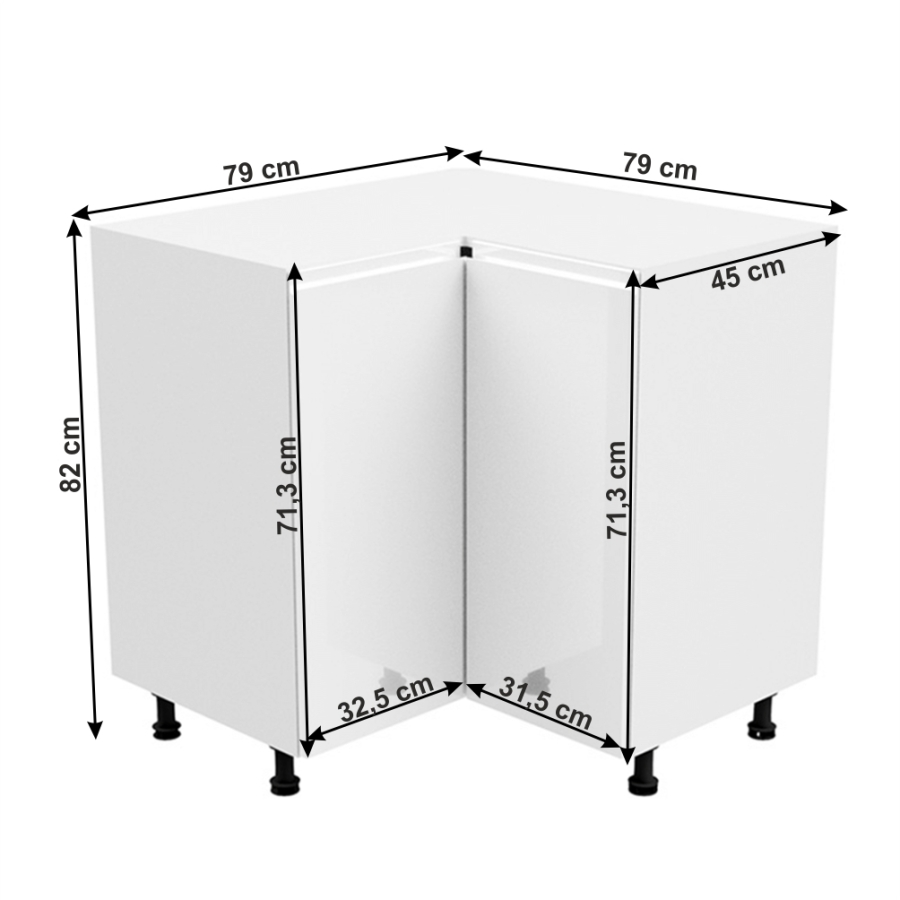 Alsó sarokszekrény, fehér/fehér extra magasfényű, AURORA D90N