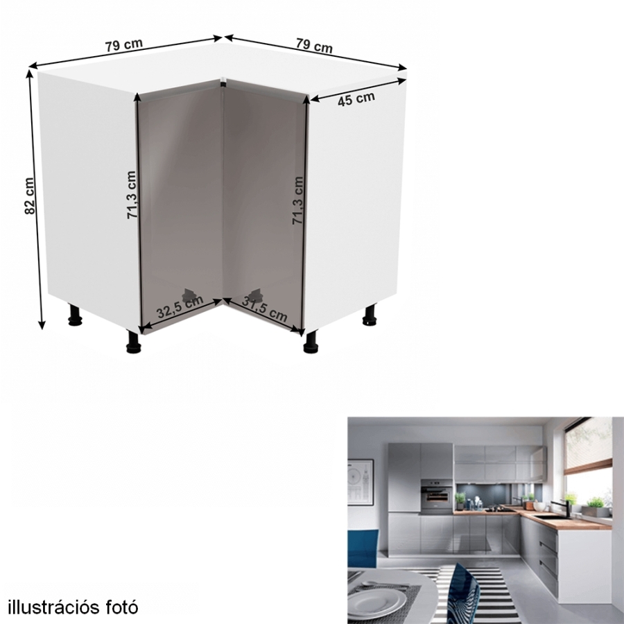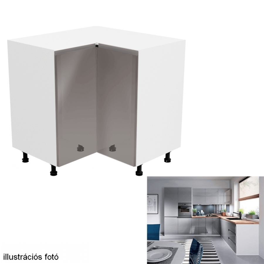 Alsó sarokszekrény, fehér/szürke extra magasfényű, AURORA D90N
