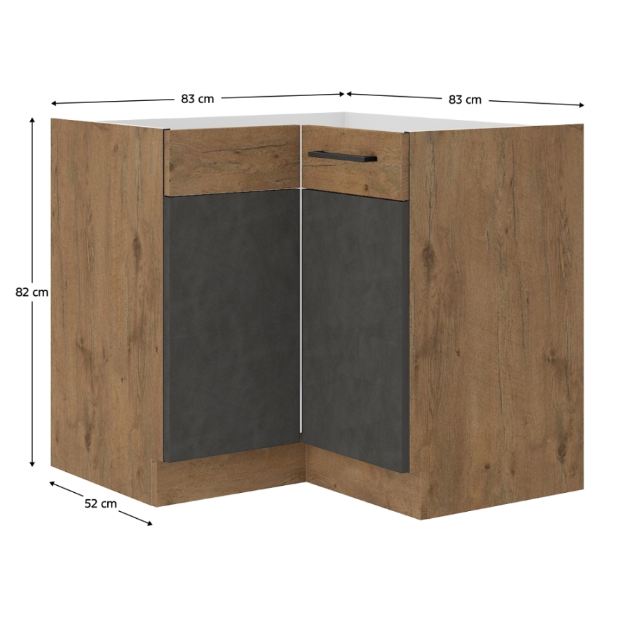 Alsó sarokszekrény, szürke matt/tölgy lancelot, VEGA 90x90 DN 1F BB