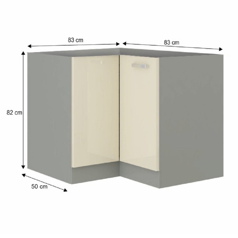 Alsó sarokszekrény, szürke/krém extra magasfényű, PRADO 90/90 DN ZB