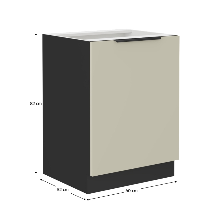 Az alsó szekrényeket az alsó sínnel együtt szállítjuk, asztallap nélkül.