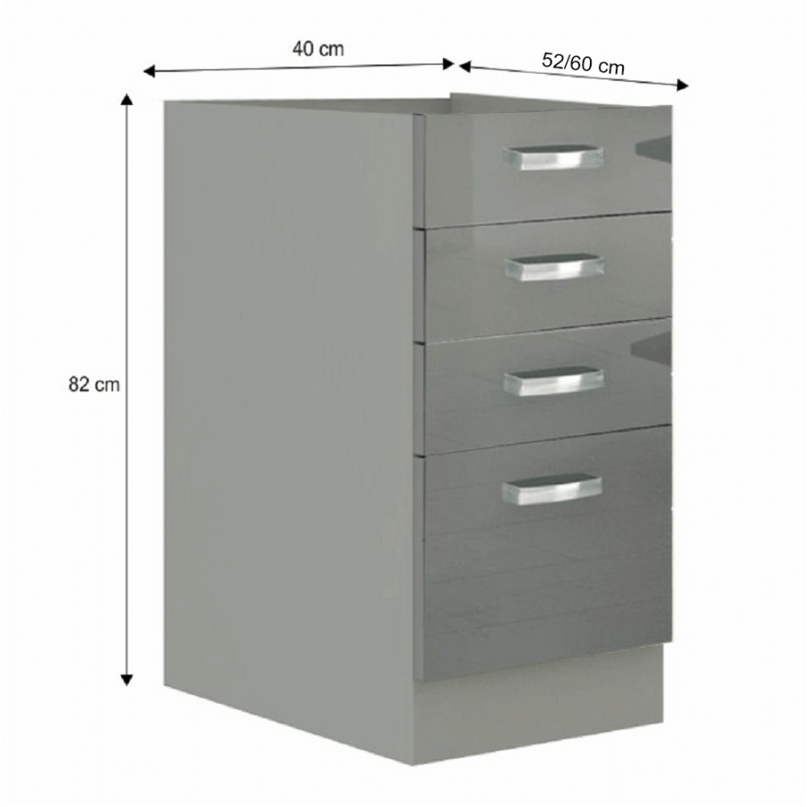 Alsó szekrény, szürke/szürke extra magasfényű, PRADO 40 D 4S
