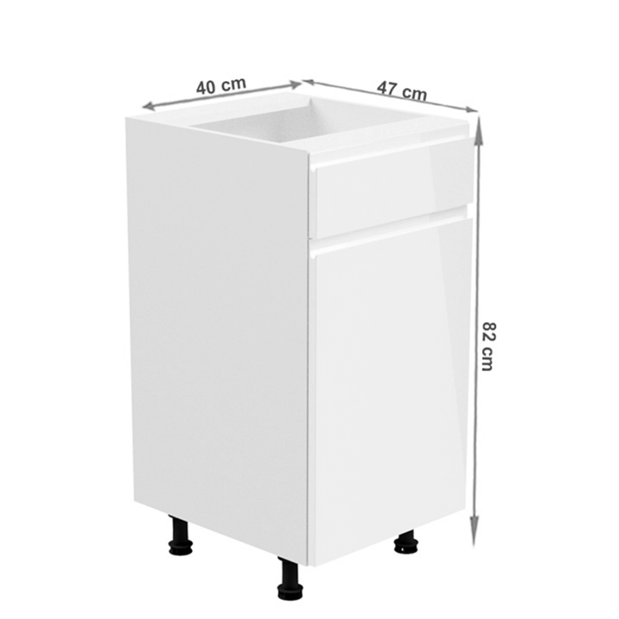 Alsószekrény, fehér/fehér extra magasfényű, jobbos, AURORA D40S1