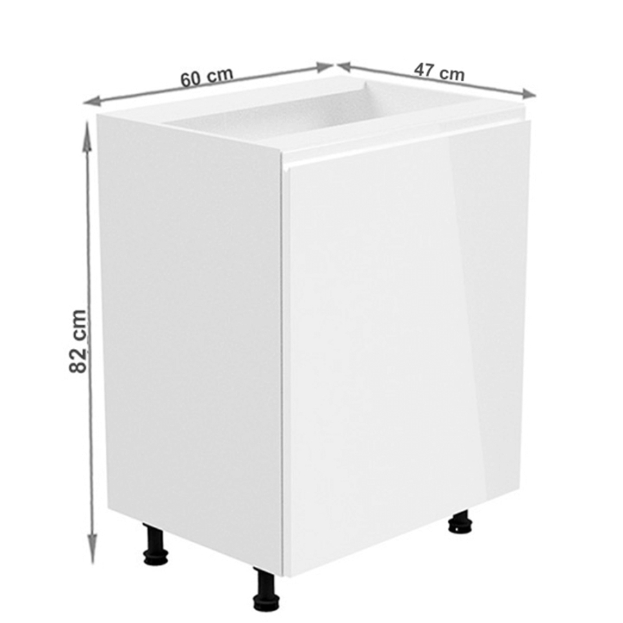 Alsószekrény, fehér/fehér extra magasfényű, jobbos, AURORA D601F