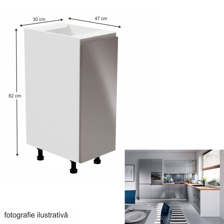 Alsószekrény, fehér/szürke extra magasfényű, jobbos, AURORA D30