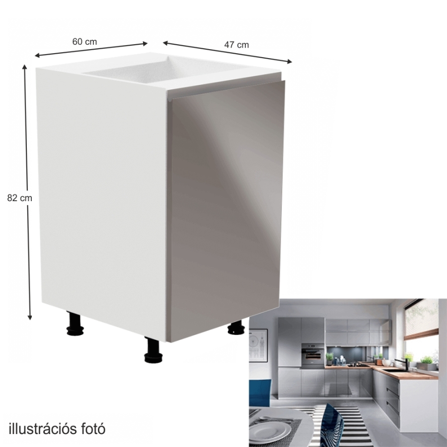 Alsószekrény, fehér/szürke extra magasfényű, jobbos, AURORA D601F