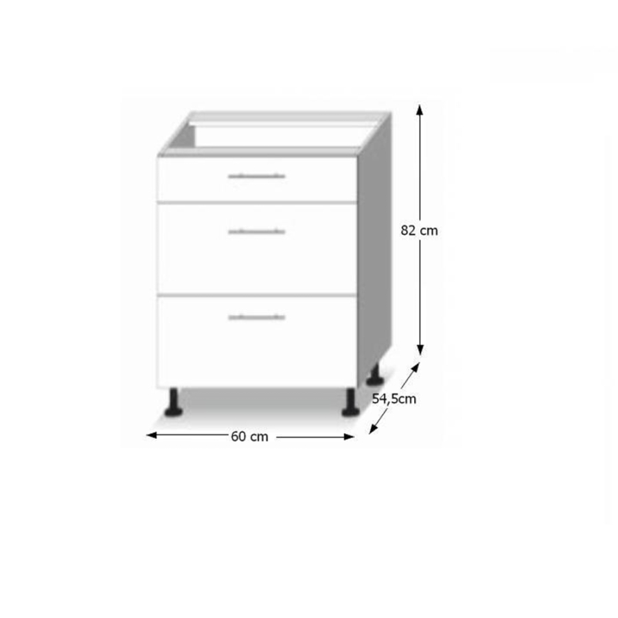 Háromfiókos alsószekrény az elemes konyhabútorból modern stílusban és változatban.