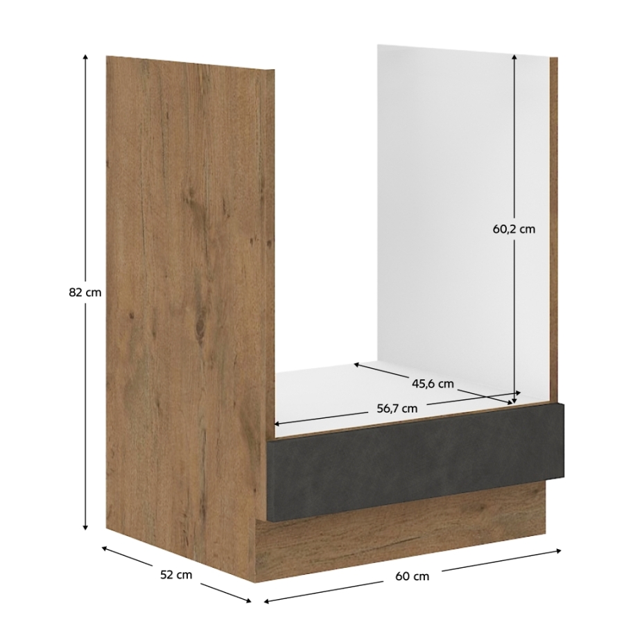 Alsószekrény, szürke matt/tölgy lancelot, VEGA 60 D GAZ BB