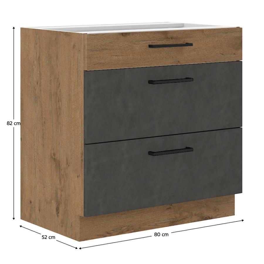 Alsószekrény, szürke matt/tölgy lancelot, VEGA 80 D 3S BB