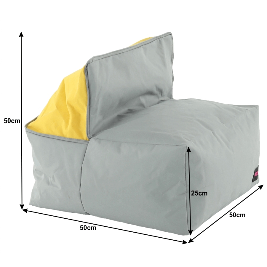 ALIMOR babzsák Anyag: szövet / EPS (polisztirol gyöngyök) A szövet kopásállósága: 90 000 Martindale Kivitel: szürke / zöld Méretek (SzéxMéxMa): 50x50x25 cm Teherbírás: 100 kg