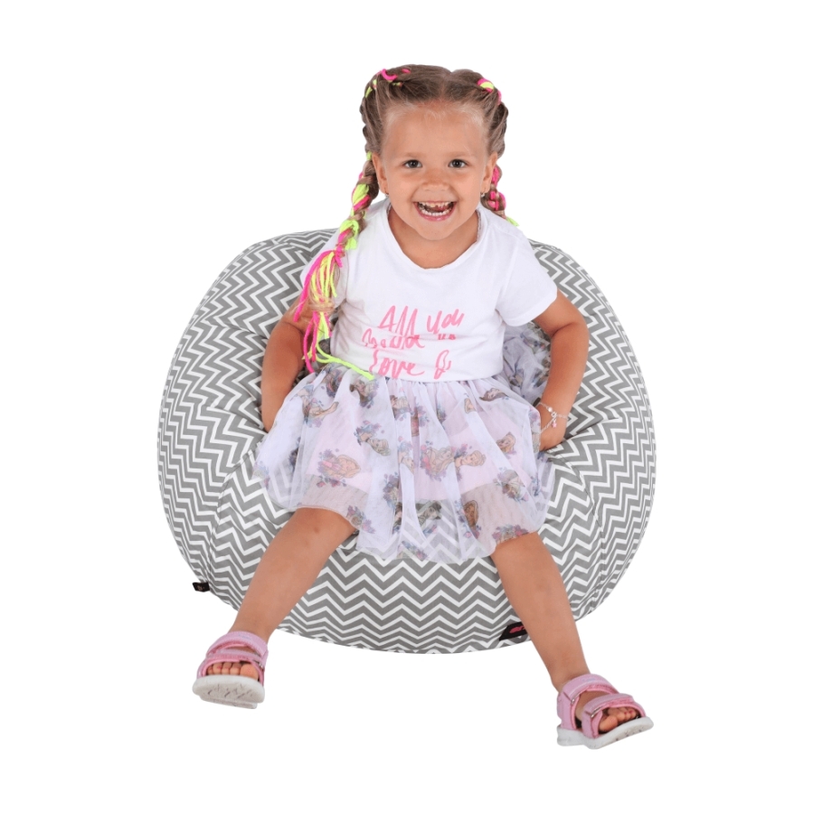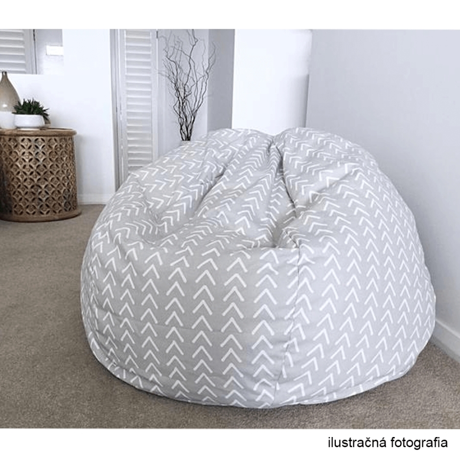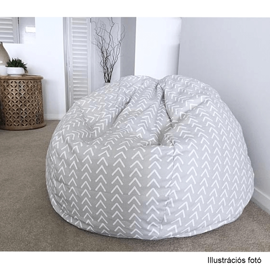 Babzsák Anyag: szövet/EPS (polisztirol golyócskák) A szövet kopásállósága: 90 000 Martindale Szín: szürkés-fehér/cik-cakk minta Méretei (MéxMa): 60x50 cm Teherbírás: 90 kg Térfogat: 120 liter Egészben szállítva.