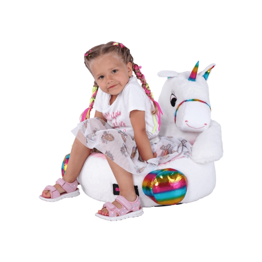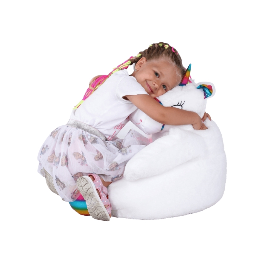 Babzsák unikornis, fehér/rózsaszín/szín mix, BUFEL