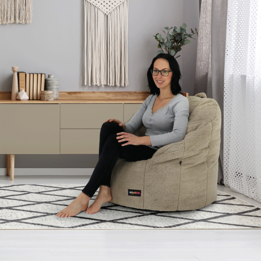 ALMERO babzsák Anyag: szövet / EPS (polisztirol gyöngyök) A szövet kopásállósága: 87 000 Martindale Méretek (SzéxMéxMa): 75x75x75 cm Teherbírás: 100 kg Szín: világosbarna Töltőtérfogat: 230 l Bontásban szállítva