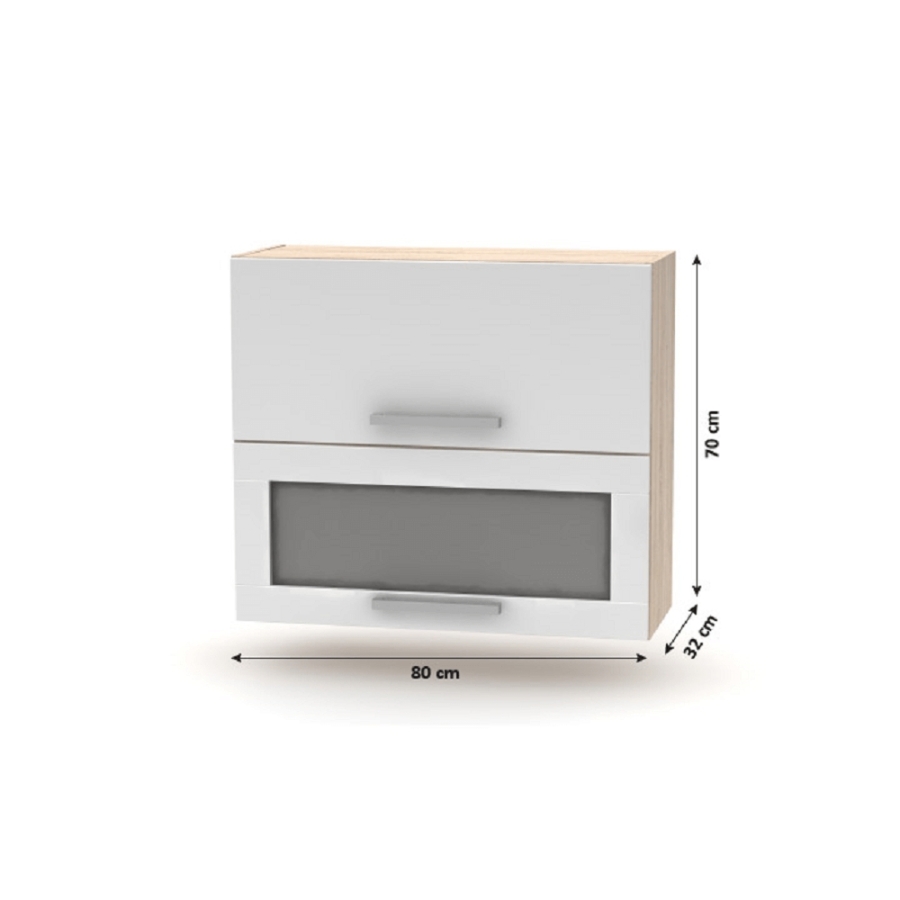 Billenő felsőszekrény üveggel 2DV, tölgy sonoma/fehér, NOVA PLUS NOPL-016-OH