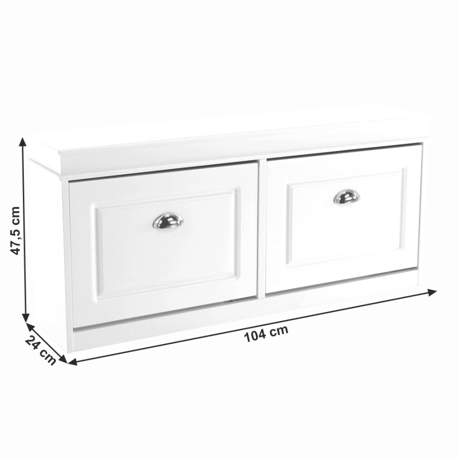 Szín: fehér Anyag: MDF/forgácslap Méretek (SzéxMéxMa): 104x24x47,5 cm 2 soros Billenő Bontásban szállítva.